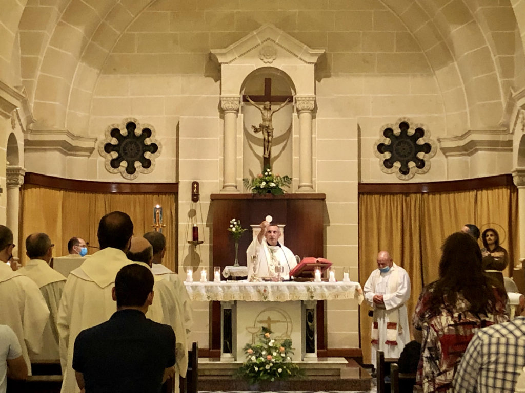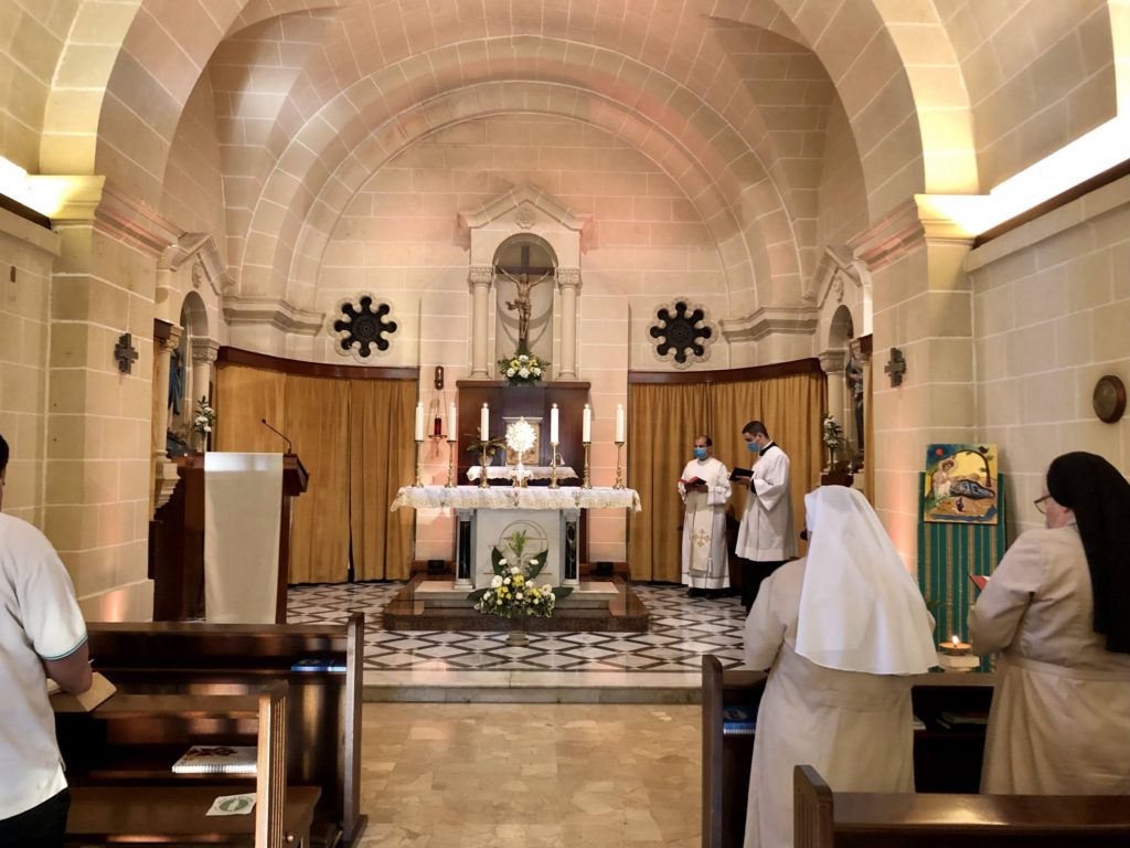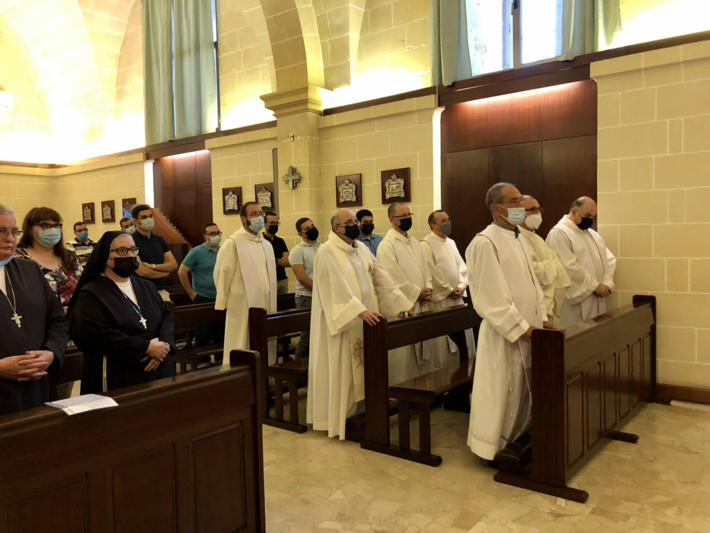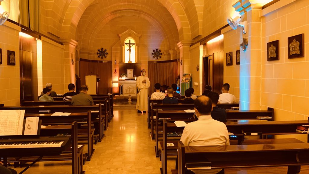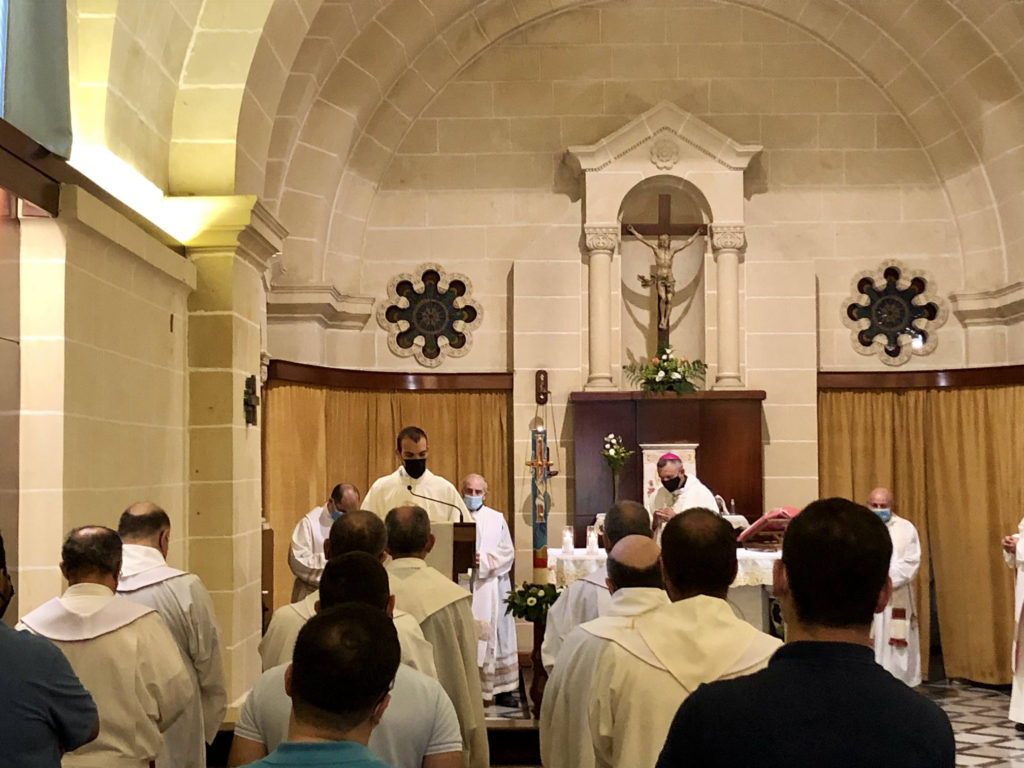 On Tuesday 28th October life at the Seminary came in tune with its day-to-day routine. The official academic year 2021-2021 started on Tuesday 5th October with a meeting for the academic staff and the celebration of the Mass. This was led by the Bishop of Gozo Msgr Anton Teuma. Formators, lecturers, sisters, and relatives of the seminarians participated in this celebration which was held in the Seminary chapel. At the end of the mass the Veni Creator was prayed as an invocation to the Holy Spirit in the beginning of this new formative year.