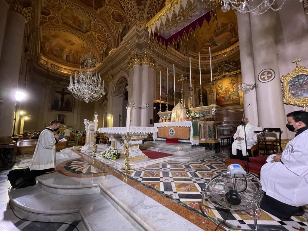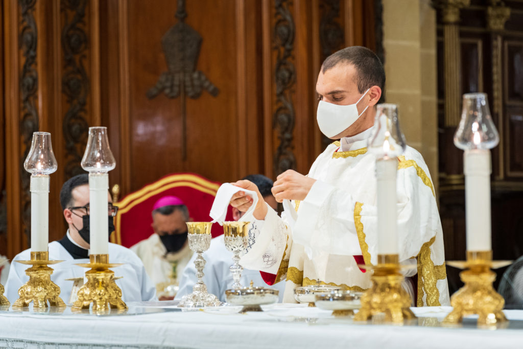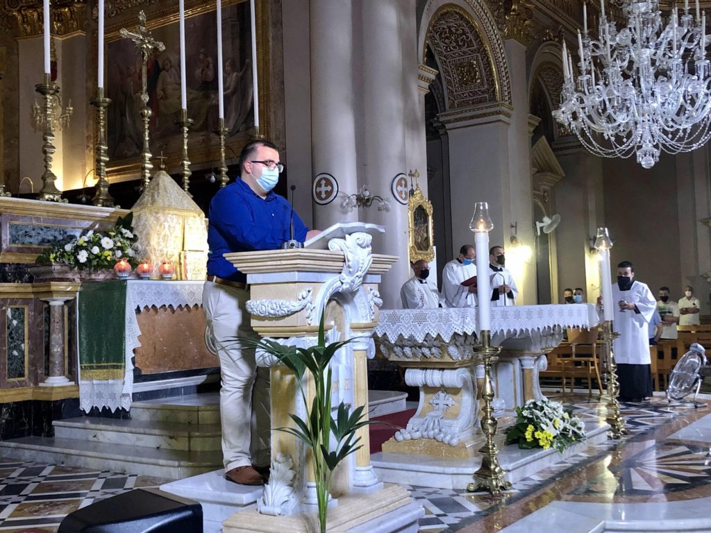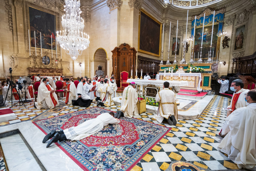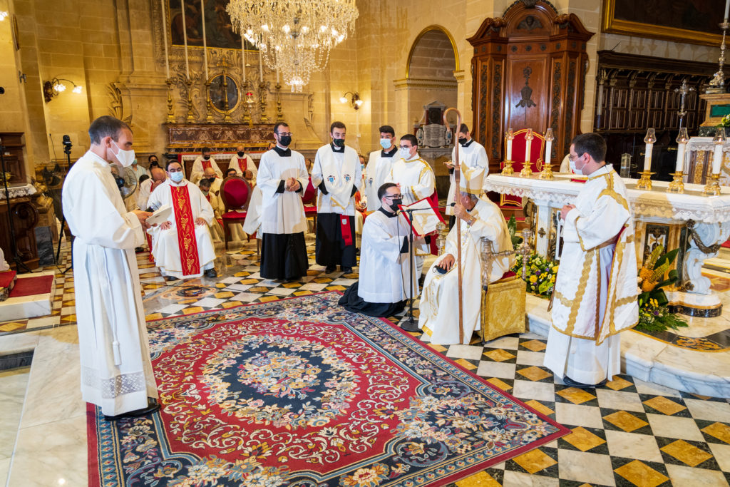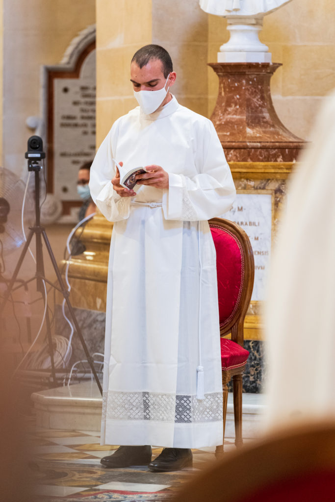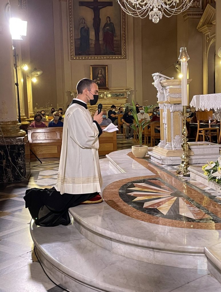 The prayers, led by the Rector of the Seminary Can Richard-Nazzareno Farrugia, commenced at 8.00pm. The youth group of Qala Parish animated the celebration with music and singing. The vigil was divided into two main parts. The first part focused on the Word. It included hymns of praise to God and the saints, the proclamation of the Gospel, readings from the magisterium of Pope Francis, and a reflection by the Rector. The second part was a eucharistic celebration. After the exposition of the Blessed Sacrament, seminarian Gabriel, kneeling before the Lord present in the Eucharist, made a prayer about his vocation. The evening of prayer concluded with the Eucharistic Benediction. In continuation with the vigil silent adoration was held at the Seminary during the night, between 10.00pm and 7.00am of the following morning. The diaconal ordination of seminarian Gabriel Vella took place in the evening of the 18th of June at the Cathedral of the Assumption of Our Lady in Victoria.