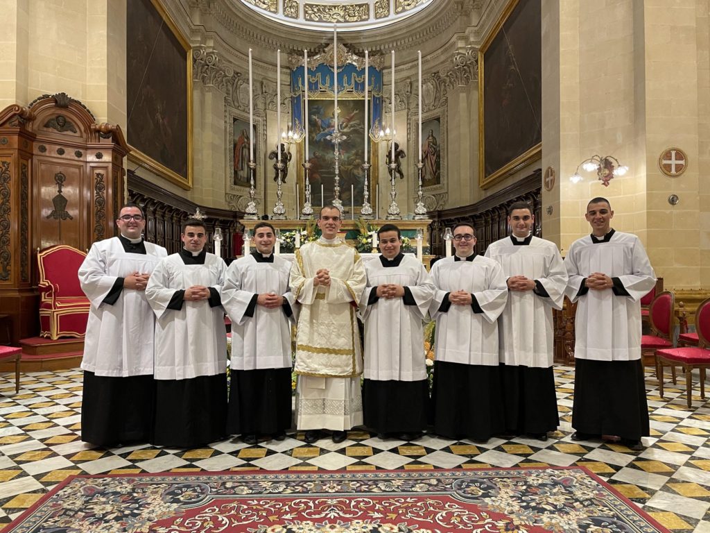 Seminarian Gabriel was invested with the stole and dalmatic by Rev. Charles Buttigieg, parish vicar of Qala Parish. The liturgy was animated by the Laudate Pueri choir under the direction of Can George J. Frendo.