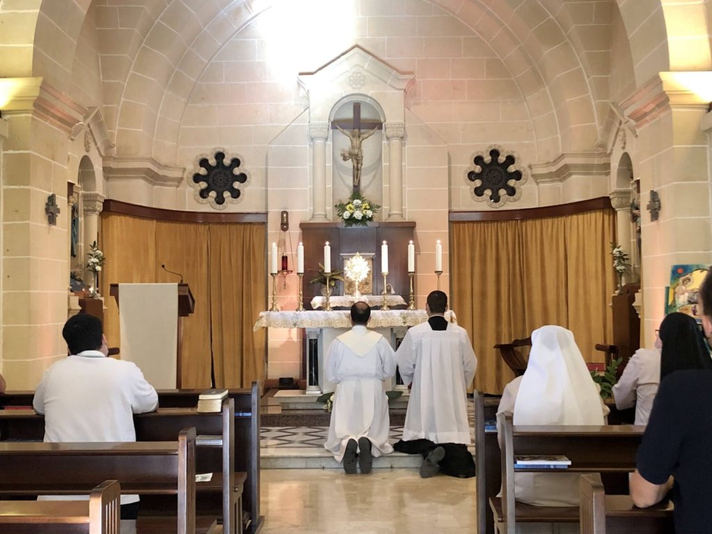 On Friday 22nd October, the Seminary community prayed for Fr Victor Zammit MSSP, a Gozitan missionary in Peru. In the evening, a Eucharistic adoration with a missionary theme was held, for which the altar boys of Nadur, Qala and Għajnsielem parishes were invited.
