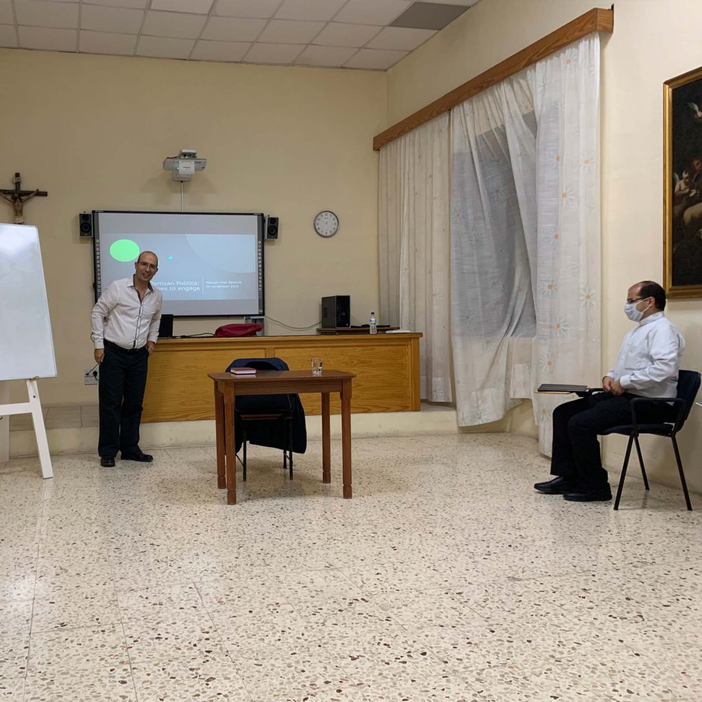 On Wednesday 10th November 2021, a human formation meeting was organised on the theme of partisan politics in Malta. Dr George Vital Zammit, a lecturer in public policy at the University of Malta, was invited to conduct this meeting and to share with the Seminary community his reflection on this matter. During the meeting, Dr Vital Zammit exposed his thoughts on the current situation of the values present in the Maltese society and how they affect the country’s politics. The need to reform society’s conscience was remarked. A discussion on the Church’s role in social life was held at the final part of this meeting.
